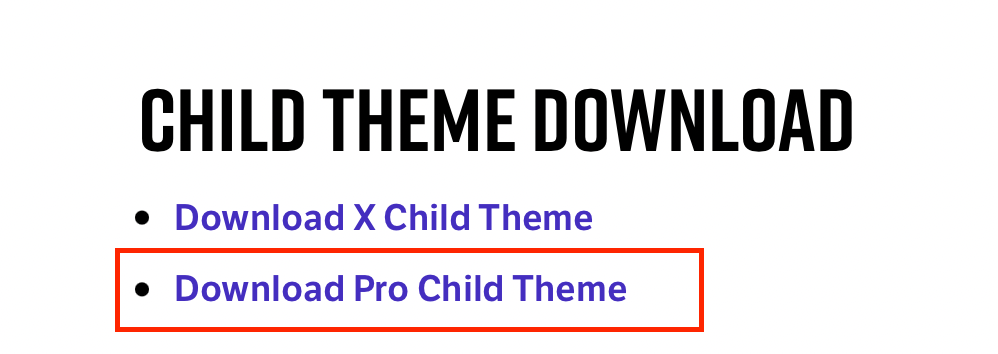 Next we need to install the Child Theme for the site. Go to https://theme.co/docs/child-themes and download Pro Child Theme