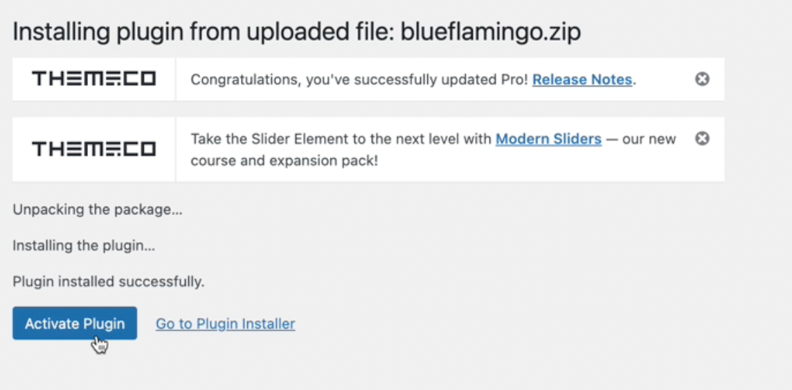 Next click Upload Plugin and choose the most up to date file of Blue Flamingo Plugin in your downloads folder.